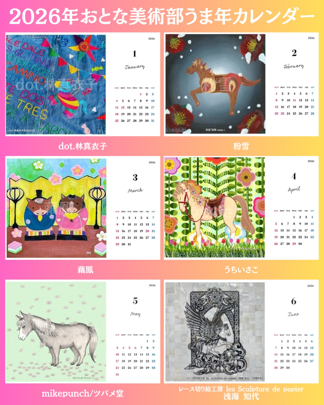 おとな美術部メンバーが制作した馬モチーフの作品達が大集合!それぞれの個性溢れる馬たちをお供に2026年を駆け抜けて下さい