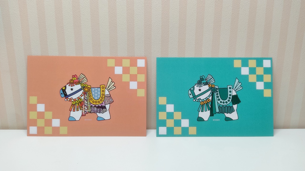 岩手県のお祭り「チャグチャグ馬コ」をイメージしたイラストのポストカードです。優しくて可愛いお馬を描きました。
