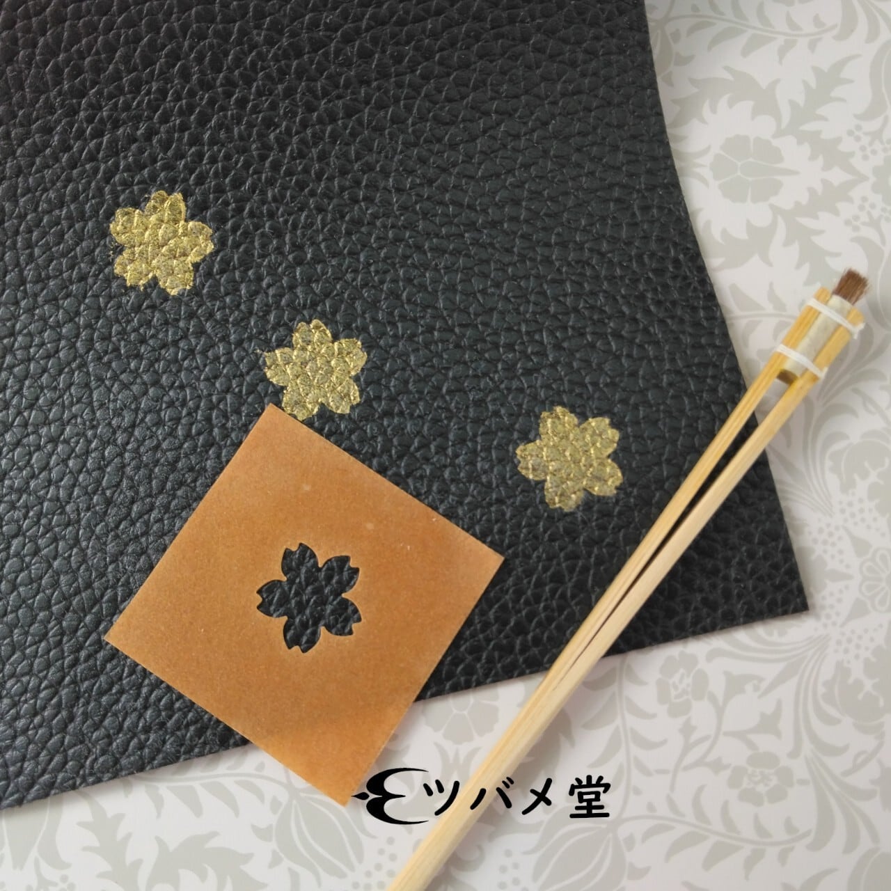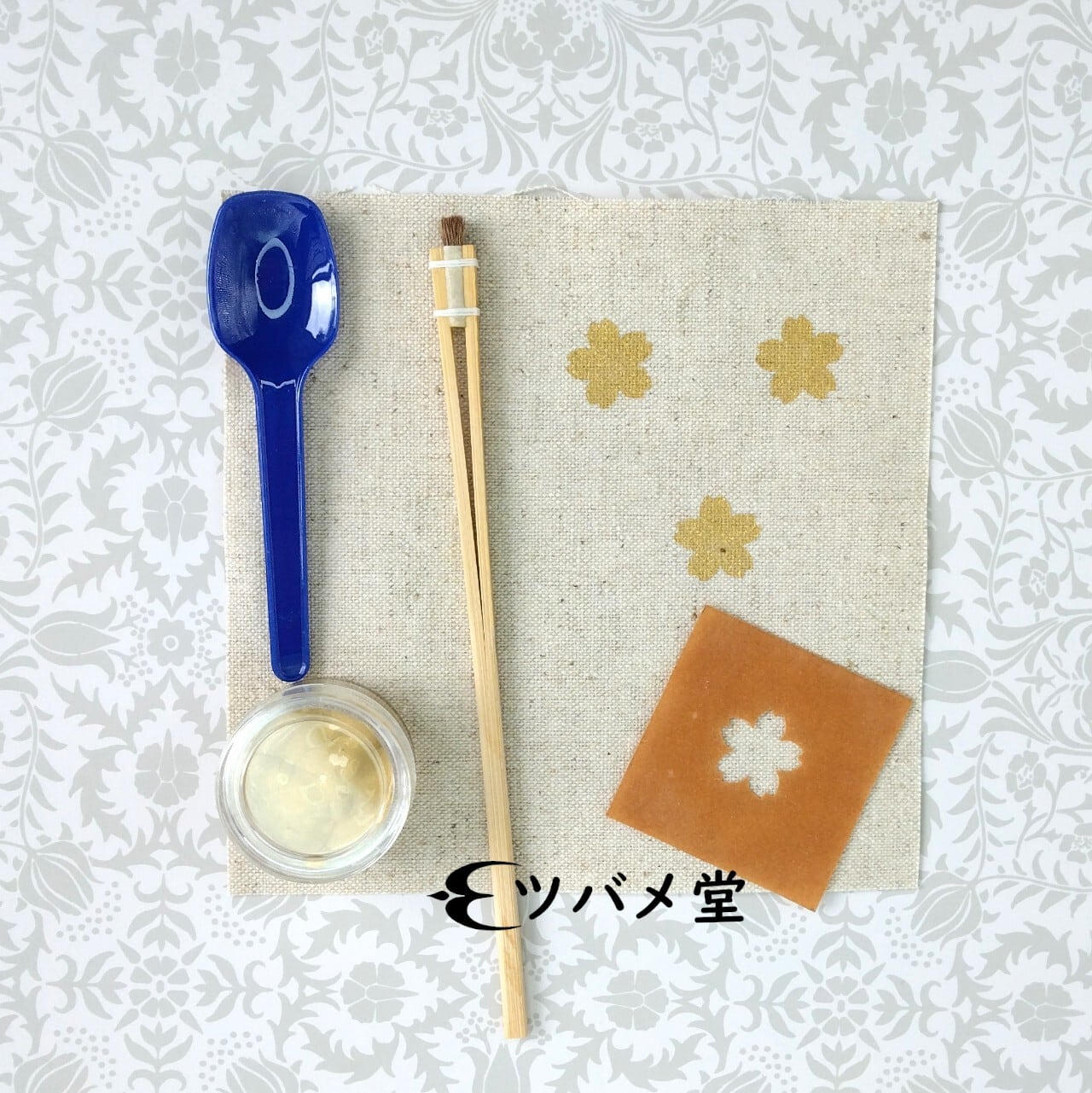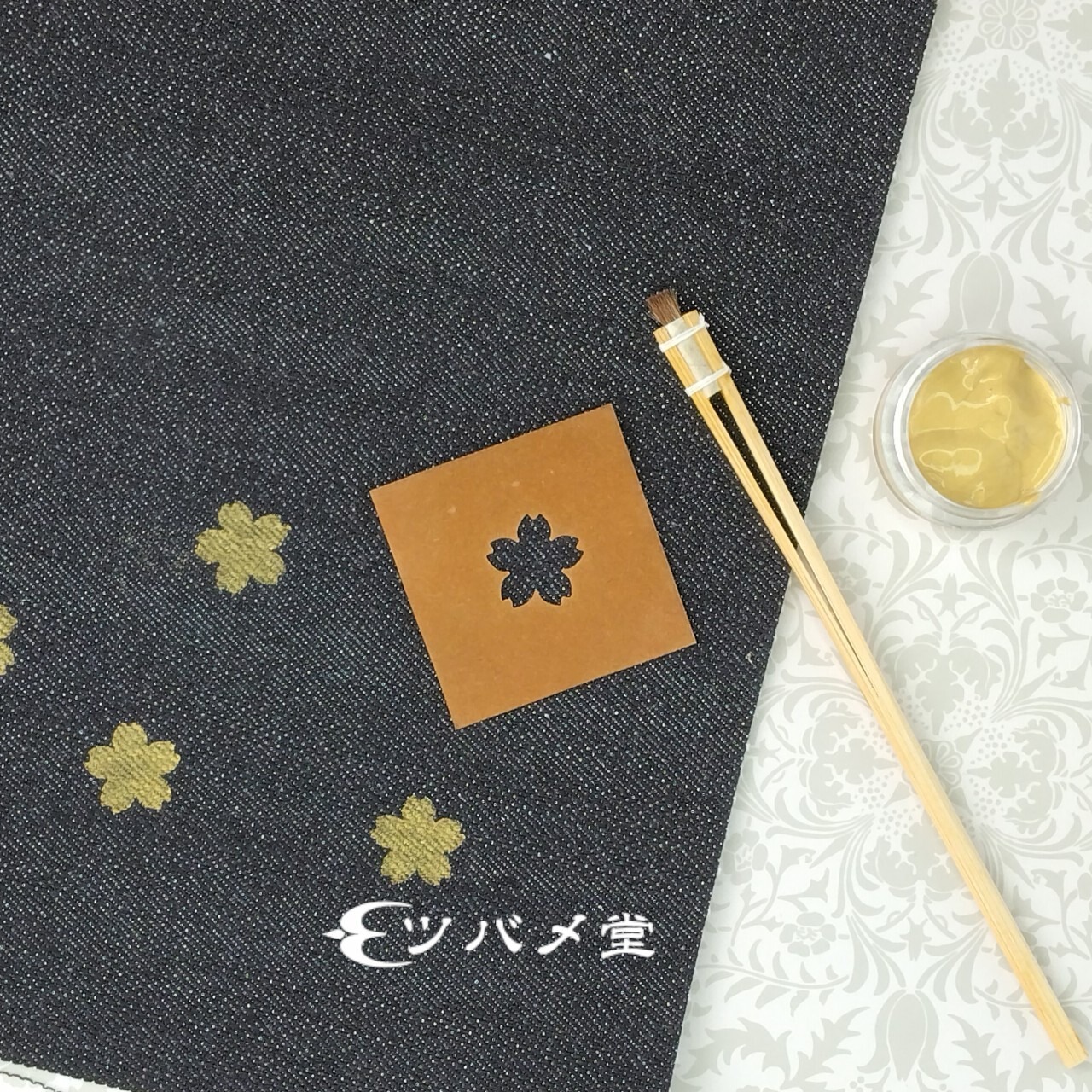 型染(ステンシル)で、金色の桜を咲かせる手芸キットです。