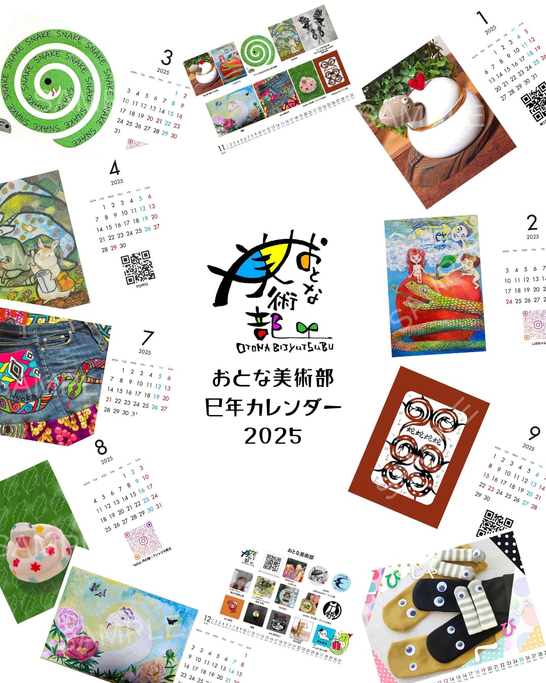 おとな美術部メンバーがヘビにいろいろな思いを馳せて制作した作品達が大集合!こちらのカレンダーをお供に巳年を楽しく生きましょう!